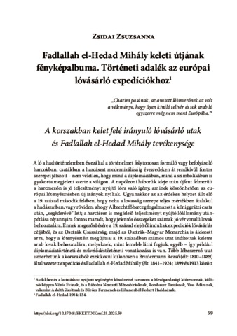 Zsidai, Zsuzsanna (2025) Fadlallah el-Hedad Mihály keleti útjának fényképalbuma : Történeti adalék az európai lóvásárló expedíciókhoz. In: Doktorandusz hallgatók XII. konferenciájának tanulmányai. Eszterházy Károly Katolikus Egyetem Líceum Kiadó, pp. 59-69.