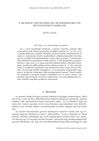 Lente, Gábor (2016) A Michaelis Menten-kinetika determinisztikus és sztochasztikus modelljei. ALKALMAZOTT MATEMATIKAI LAPOK, 33 (2). pp. 159-174. ISSN 0133-3399