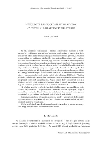 Póta, György (2016) Megoldott és megoldatlan feladatok az oszcilláló reakciók elméletében. ALKALMAZOTT MATEMATIKAI LAPOK, 33 (2). pp. 175-190. ISSN 0133-3399
