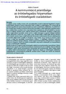 Adámi-Rózsa, Zsanett (2023) A kommunikáció jelentőssége az örökbefogadási folyamatban és örökbefogadó családokban. KAPOCS, 6 (2-3). pp. 112-120. ISSN 1588-7227