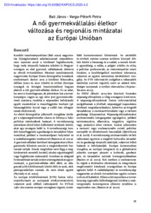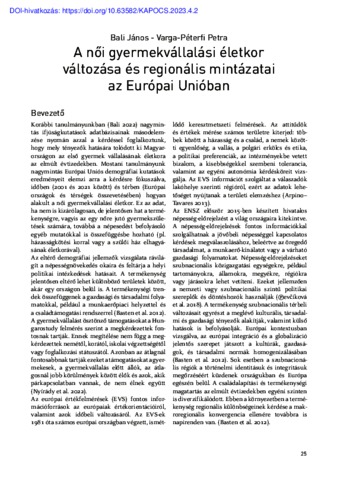 Bali, János and Varga-Péterfi, Petra (2023) A női gyermekvállalási életkor változása és regionális mintázatai az Európai Unióban. KAPOCS, 6 (4). pp. 25-41. ISSN 1588-7227