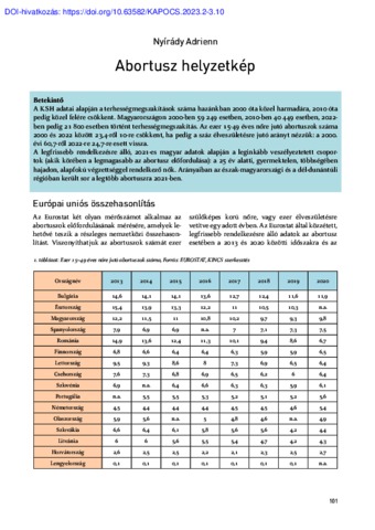 Nyírády, Adrienn (2023) Abortusz helyzetkép. KAPOCS, 6 (2-3). pp. 101-111. ISSN 1588-7227