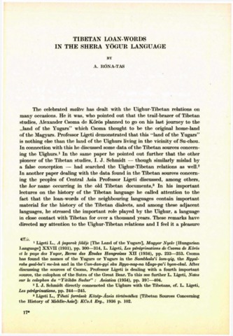 Róna-Tas, András (1962) Tibetan Loanwords in Shera Yögur language. ACTA ORIENTALIA ACADEMIAE SCIENTIARUM HUNGARICAE, 15. pp. 259-271. ISSN 0001-6446