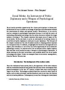 Social media provides opportunity for citizen participation in democratic deliberation because it allows an exchange of opinions and information without the intervention of editors and opinion leaders. Nevertheless, it can also be used as a weapon in psychological operations because it can hide the source of misleading information and merge into the online discourse without the target audience realising it. This chapter examines two major areas of impact of the social media. On the one hand, it can be an instrument of including citizens in a new form of public diplomacy called peer-to-peer diplomacy. The first part of the chapter summarises the role of modern media in shaping political opinion in a transparent way. In addition, it highlights the theoretical background to its impact, then introduces a case of the successful application of social media for promoting a country. In contrast to this, the second part of the chapter explains why and how social media becomes a weapon in psychological operations. It draws attention to the total surveillance and isolation which the social media technologically allows. It takes its examples from recent events: among others, from the Russia−Ukraine war.