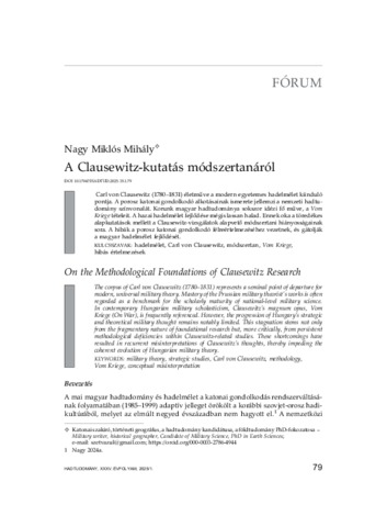 Nagy, Miklós Mihály (2025) A Clausewitz-kutatás módszertanáról. HADTUDOMÁNY: A MAGYAR HADTUDOMÁNYI TÁRSASÁG FOLYÓIRATA, 35 (1). pp. 79-92. ISSN 1215-4121