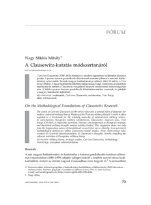 Carl von Clausewitz (1780–1831) életműve a modern egyetemes hadelmélet kiinduló pontja. A porosz katonai gondolkodó alkotásainak ismerete jellemzi a nemzeti hadtudomány színvonalát. Korunk magyar hadtudománya sokszor idézi fõ műve, a Vom Kriege tételeit. A hazai hadelmélet fejlődése mégis lassan halad. Ennek oka a töredékes alapkutatások mellett a Clausewitz-vizsgálatok alapvető módszertani hiányosságainak sora. A hibák a porosz katonai gondolkodó félreértelmezéséhez vezetnek, és gátolják a magyar hadelmélet fejlődését.