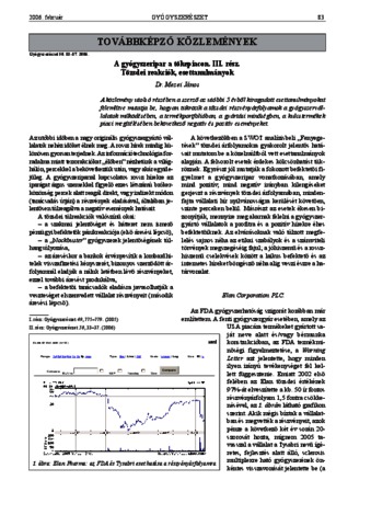 Mezei, János (2006) A gyógyszeripar a tőkepiacon. III. rész. Tőzsdei reakciók, esettanulmányok. GYÓGYSZERÉSZET, 50 (2). pp. 83-87. ISSN 0017-6036