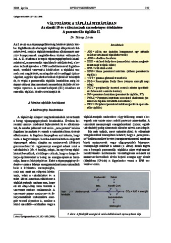 Télessy, István (2006) Az elmúlt 10 év változásainak szemelvényes áttekintése A parenterális táplálás II. GYÓGYSZERÉSZET, 50 (4). pp. 227-232. ISSN 0017-6036