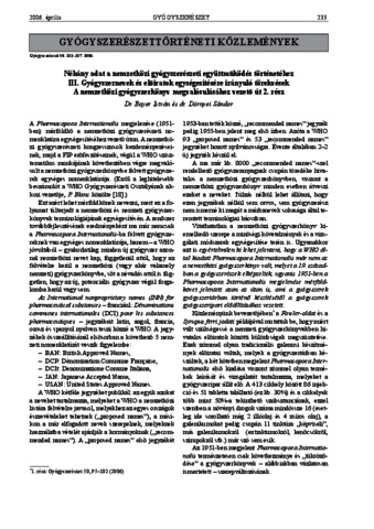 Bayer, István and Dörnyei, Sándor (2006) Néhány adat a nemzetközi gyógyszerészeti együttműködés történetéhez III. Gyógyszernevek és előiratok egységesítésére irányuló törekvések A nemzetközi gyógyszerkönyv megvalósulásához vezetõ út. 2. rész. GYÓGYSZERÉSZET, 50 (4). pp. 233-237. ISSN 0017-6036