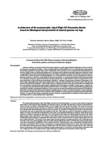 Kondor, Henrietta and Braun, Bence Ádám and M. Tóth, Tivadar (2025) Architecture of the metamorphic Algyő High (SE Pannonian Basin) based on lithological interpretation of natural gamma-ray logs = A metamorf Algyő-hát (DK Pannon-medence) kőzettani felépítése természetes gamma szelvények értelmezése alapján. FÖLDTANI KÖZLÖNY, 155 (3). pp. 195-211. ISSN 0015-542X