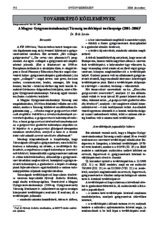 Erõs, István (2006) A Magyar Gyógyszerésztudományi Társaság továbbképzõ tevékenysége (2001–2006). GYÓGYSZERÉSZET, 50 (12). pp. 742-747. ISSN 0017-6036
