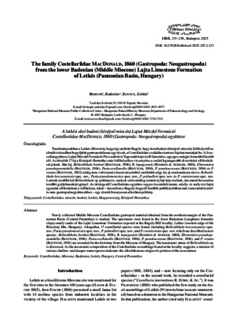 Biskupič, Radoslav and Kovács, Zoltán (2025) The family Costellariidae MACDONALD, 1860 (Gastropoda: Neogastropoda) from the lower Badenian (Middle Miocene) Lajta Limestone Formation of Letkés (Pannonian Basin, Hungary) = A letkési alsó badeni (középső miocén) Lajtai Mészkő Formáció Costellariidae MACDONALD, 1860 (Gastropoda: Neogastropoda) együttese. FÖLDTANI KÖZLÖNY, 155 (2). pp. 133-150. ISSN 0015-542X