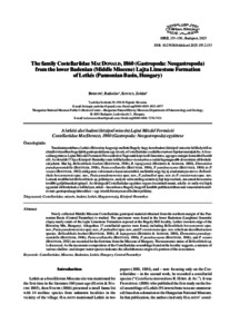 Newly collected Middle Miocene Costellariidae gastropod material obtained from the northern margin of the Pannonian Basin (Central Paratethys) is studied. The specimens were found in the lower Badenian (Langhian) limonitic clayey-marly sands of the Lajta Limestone Formation exposed at the Bagoly Hill locality, Letkés (western edge of the Börzsöny Mts, Hungary). Altogether, 17 costellariid species were found, including Bellardithala borzsonyensis spec. nov., Pusia pseudomoravica spec. nov., P. palmulleri spec. nov., and P. crassiornata spec. nov. which are described as new species. Bellardithala boehmi (BOETTGER, 1906), B. lapugyensis (HOERNES & AUINGER, 1880), Ebenomitra pseudopyramidella (BOETTGER, 1906), Pusia avellanella (BOETTGER, 1906), P. paraleucozona (BOETTGER, 1906), and P. vexans (BOETTGER, 1902) are recorded for the first time from the Miocene of Hungary. The taxonomic status of Bellardithala sp. is discussed. As the taxonomic composition of the Costellariidae assemblage found at the locality suggests, a mixture of various shallow- and deeper water species indicates the allochthonous origin of a portion of the association. | Tanulmányunkban a Letkés (Börzsöny hegység) melletti Bagoly-hegy kora badeni (középső miocén) lelőhelyéről az elmúlt évtizedben begyűjtött gastropodafauna egy részét, a Costellariidae-családhoz tartozó fajokat mutatjuk be. A fosszíliaegyüttes a Lajtai Mészkő Formáció Pécsszabolcsi Tagozatát képviselő limonitos, agyagos-márgás homokból került elő. Az itt talált 17 faj a Középső-Paratethys más lelőhelyeihez viszonyítva a család legmagasabb diverzitású előfordulását jelenti. Hat faj, Bellardithala boehmi (BOETTGER, 1906), B. lapugyensis (HOERNES & AUINGER, 1880), Ebenomitra pseudopyramidella (BOETTGER, 1906), Pusia avellanella (BOETTGER, 1906), P. paraleucozona (BOETTGER, 1906) és P. vexans (BOETTGER, 1902) eddig nem volt ismert a hazai miocénból, mellettük négy faj új a tudományra nézve: Bellardithala borzsonyensis spec. nov., Pusia pseudomoravica spec. nov., P. palmulleri spec. nov. és P. crassiornata spec. nov. Leírunk továbbá két Bellardithala sp. példányt is, melyek valószínűleg szintén új fajt képviselnek, ám ennek bevezetése további gyűjtőmunkát igényel. Az itt tárgyalt Costellariidae-együttes vegyes összetételt mutat, sekély- és mélyvízi fajok egyaránt előfordulnak a lelőhelyen, tehát – hasonlóan a Bagoly-hegyről korábbi publikációkban már ismertetett korall- és más gastropodaegyüttesekhez – egy részük bizonyosan allochton példány.
