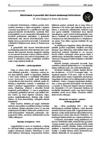Soós, Gyöngyvér and Kovács Ida, Jusztina (2008) Baktériumok és paraziták által okozott mindennapi bőrfertőzések. GYÓGYSZERÉSZET, 52 (1). pp. 28-30. ISSN 0017-6036