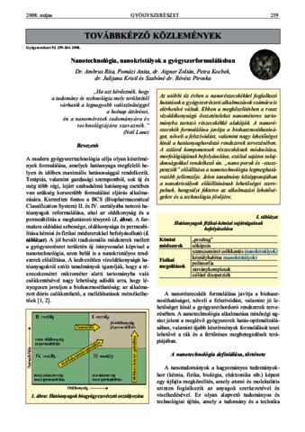 Ambrus, Rita and Pomázi, Anita and Aigner, Zoltán and Kocbek, Petra and Kristl, Julijana and Szabóné dr. Révész, Piroska (2008) Nanotechnológia, nanokristályok a gyógyszerformulálásban. GYÓGYSZERÉSZET, 52 (5). pp. 259-264. ISSN 0017-6036