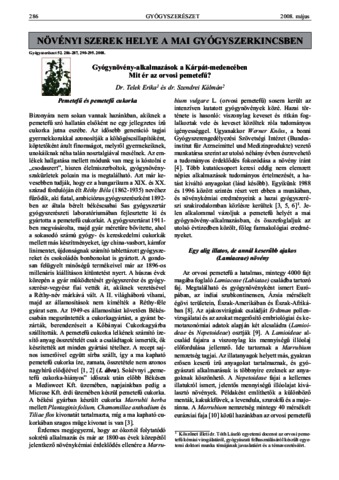 Telek, Erika and Szendrei, Kálmán (2008) Gyógynövény-alkalmazások a Kárpát-medencében : Mit ér az orvosi pemetefű? GYÓGYSZERÉSZET, 52 (5). pp. 286-295. ISSN 0017-6036