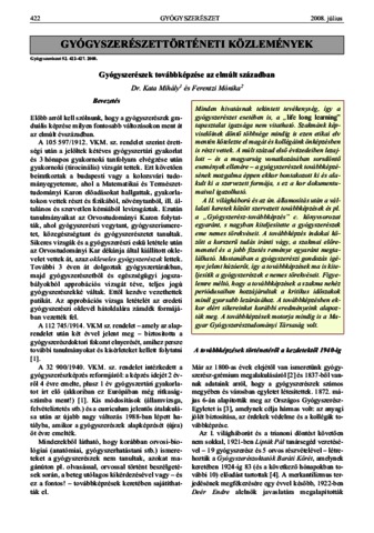 Kata, Mihály and Ferentzi, Mónika (2008) Gyógyszerészek továbbképzése az elmúlt században. GYÓGYSZERÉSZET, 52 (7). pp. 422-427. ISSN 0017-6036