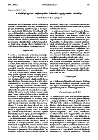 Viola, Réka and Soós, Gyöngyvér (2008) A felső légút gyakori megbetegedései és kezelésük gyógyszerészi lehetőségei. GYÓGYSZERÉSZET, 52 (10). pp. 603-605. ISSN 0017-6036