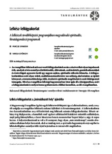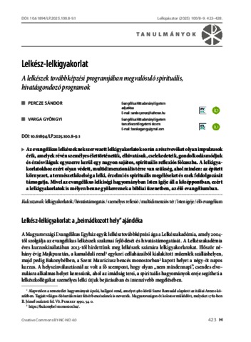 Percze, Sándor and Varga, Gyöngyi (2025) Lelkész-lelkigyakorlat : A lelkészek továbbképzési programjában megvalósuló spirituális, hivatásgondozó programok = Pastoral Retreat : Spiritual and Vocational Training Programs Implemented in the Pastors’ Postgraduate Education Program. LELKIPÁSZTOR, 100 (8-9). pp. 423-428. ISSN 0133-2821