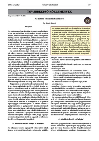 Kádár, László (2008) Az asztma inhalációs kezeléséről. GYÓGYSZERÉSZET, 52 (11). pp. 647-653. ISSN 0017-6036