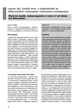 Kovács, Mihály (2008) Lassan járj, tovább érsz: a sejtosztódás és -differenciáció motorjainak mechanikai szabályozása. BIOKÉMIA: A MAGYAR BIOKÉMIAI EGYESÜLET FOLYÓIRATA, 32 (4). pp. 78-81. ISSN 0133-8455