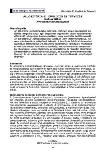 Az allosztéria termodinamikai jelenség, melynek során ligandumok kötődése megváltoztatja egy biopolimer egymástól távoli kötőhelyeinek affinitását, alegységei kooperativitását, vagy funkciója hatékonyságát. Az allosztérikus kölcsönhatásokat újabban nem determinisztikus, hanem sztochasztikus jellegűnek tekintik. A Biokémia folyóirat decemberi számában áttekintettük az allosztéria fogalmának változását, modelljeit és mechanizmusát ioncsatorna funkciójú neurotranszmitter receptorokkal illusztrálva. Jelen közlemény az ioncsatorna és receptor oligomerek allosztériájának molekuláris evolúcióját, az evolúció termodinamikai hajtóerejét és az allosztéria tervezésének, hasznosításának lehetőségeit tárgyalja.