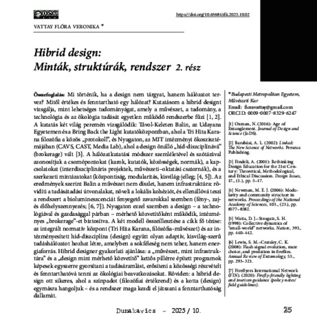 Vattay, Flóra Veronika (2025) Hibrid design: Minták, struktúrák, rendszer 2. rész. DUNAKAVICS, 13 (10). pp. 25-39. ISSN 2064-5007