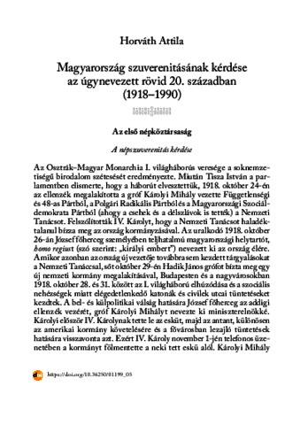 Horváth, Attila (2024) Magyarország szuverenitásának kérdése az úgynevezett rövid 20. században (1918-1990). In: Az európai államok evolúciója. Ludovika Egyetemi Kiadó, Budapest, pp. 149-221. ISBN 9789636530556; 9789636530563; 9789636530570