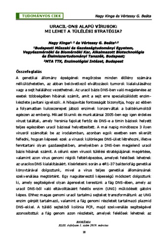 Nagy, Kinga and Vértessy, G. Beáta (2019) Uracil-DNS alapú vírusok: mi lehet a túlélési stratégia? BIOKÉMIA: A MAGYAR BIOKÉMIAI EGYESÜLET FOLYÓIRATA, 43 (1). pp. 18-35. ISSN 0133-8455