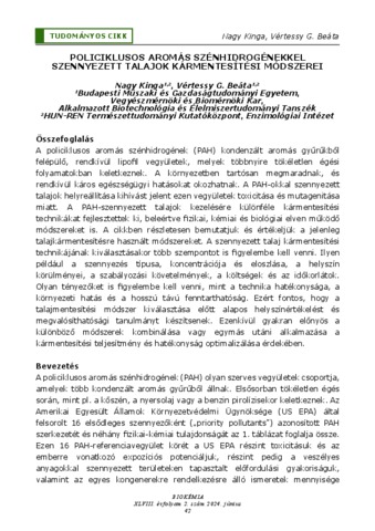 Nagy, Kinga and Vértessy, G. Beáta (2024) Policiklusos aromás szénhidrogénekkel szennyezett talajok kármentesítési módszerei. BIOKÉMIA: A MAGYAR BIOKÉMIAI EGYESÜLET FOLYÓIRATA, 48 (2). pp. 42-61. ISSN 0133-8455