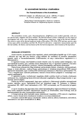 Kerekes, Katalin and Baldea, Ioan and Várhelyi, Csaba and Pokol, György and Várhelyi, Csaba (2007) Az azometinek termikus viselkedése. MŰSZAKI SZEMLE (EMT) (39-40). pp. 31-34. ISSN 1454-0746