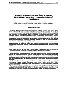 Józsa, Csilla and Husvéth, Ferenc and Bán, Beáta and Takács, Erzsébet (2006) A D-vércsoport és a biokémiai polimorf rendszerek vizsgálata telivér és ügető fajtákban. ÁLLATTENYÉSZTÉS ÉS TAKARMÁNYOZÁS, 55 (2). pp. 117-125. ISSN 0230-1814