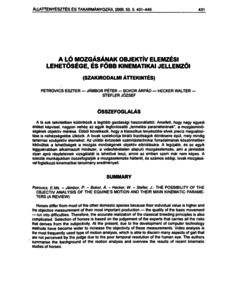 A ló sok tekintetben különbözik a legtöbb gazdasági haszonállattól. Amellett, hogy nagy egyedi értéket képvisel, nagyon nehéz az egyik legfontosabb „termelési paraméterének”, a mozgásminőségének objektív mérése. Ebből következik, hogy a klasszikus tenyésztési elvek precíz megvalósítása is nehézségekbe ütközik. A lovak szelekciója bíráló bizottságok döntéseire épül, mely mindig tartalmaz szubjektív elemeket. Az utóbbi évtizedek számítástechnikai forradalmának köszönhetően kibővültek a lehetőségek a mozgás minőségének objektív elbírálására. A legújabb, és az egyik leggyakrabban alkalmazott módszer, a videofelvételen alapuló mozgáselemzés, ami a jármódok olyan apró részleteinek vizsgálatát is lehetővé teszi, amire az emberi szem már nem képes. A szerzők munkájukban összefoglalják a mozgáselemzés hátterét, és számos eddigi, lovak mozgásával foglalkozó kinematikai tanulmány eredményeit.