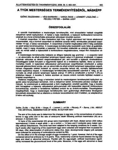 Szőke, Zsuzsanna and Végi, Barbara and Varga, Ákos and Lennert, Lászlóné and Péczely, Péter and Barna, Judit (2006) A tyúk mesterséges termékenyítéséről, másképp. ÁLLATTENYÉSZTÉS ÉS TAKARMÁNYOZÁS, 55 (5). pp. 483-491. ISSN 0230-1814