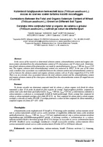 A kutatómunka során meghatároztuk 35 búzafű és 35 búzamag szelén tartalmát, szeleno-metionin tartalmát és szeleno-metioninból számolt szerves szelén tartalmát. A megfelelően előkészített minta szelén tartalmát spektrofluorimetriás (λgerjesztés =380 nm, λemisszió =519 nm) meghatározásával, míg a szeleno-metionin-tartalmat nagyhatékonyságú folyadékkromatográfiával mértük. A búzamag esetében a szeléntartalom és a szelenometionin tartalom között a korreláció gyenge (R=0,23) és közepes az összszelén és szerves szeléntartalom között (R=0,40). Rendkívül szoros összefüggés mutatkozott a búzafű összesszelén tartalma, szeleno-metionin illetve szeleno-metioninból számolt szerves szelén tartalma között (R értéke 0,92 és 0,98 között változott).