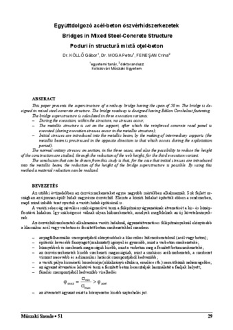 Köllő, Gábor and Moga, Petru and Fenesan, Crina (2010) Együttdolgozó acél-beton öszvérhídszerkezetek. MŰSZAKI SZEMLE (EMT) (51). pp. 29-35. ISSN 1454-0746