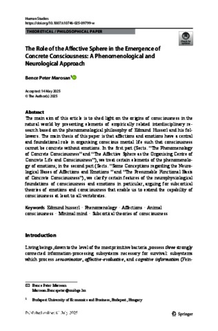 Marosán, Bence Péter (2025) The Role of the Affective Sphere in the Emergence of Concrete Consciousness: A Phenomenological and Neurological Approach. HUMAN STUDIES. ISSN 1572-851X (In Press)