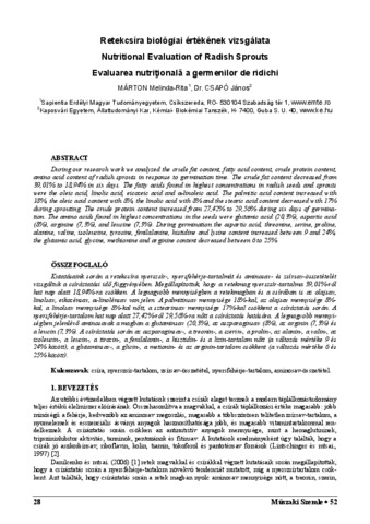 Márton, Melinda-Rita and Csapó, János (2010) Retekcsíra biológiai értékének vizsgálata. MŰSZAKI SZEMLE (EMT) (52). pp. 28-31. ISSN 1454-0746