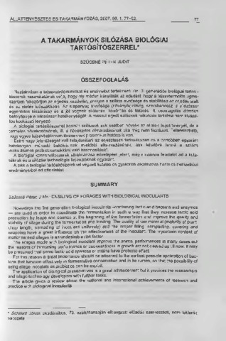 Napjainkban a tejsavbaktériumokat és enzimeket tartalmazó, ún. 3. generációs biológiai tartósítószerek használatának célja, hogy oly módon irányítsák az erjedést, hogy a tejsavtermelés ugrásszerűen fokozódjon az erjedés kezdetén, javuljon a szilázs minősége és stabilitása az erjedés alatt és az etetés időszakában. Az alapanyag minősége (növényfejlettség, szecskahossz, a silózószer egyenletes kiszórása) és a jól végzett silótöltés, tömörítés és takarás, ill. csomagolás döntően befolyásolja a silózószer hatékonyságát. A rosszul erjedt szilázsok mikotoxin tartalma nem kívánatos kockázati tényező. A biológiai tartósítószerrel készült szilázsok sok esetben növelik az állatok teljesítményét, de a termelés növekedésének, ill. a növekedés elmaradásának oka még nem tisztázott. Feltételezhető, hogy egyes tejsavbaktérium törzseknek probiotikus hatása is van. Ezért nagy jelentőséget kell tulajdonítani az erjesztéses tartósításban és a bendőben egyaránt hatékonyan működő baktériumok mielőbbi alkalmazásának, ami lehetővé tenné a szilázs inokulátumok probiotikumokként való hasznosítását. A biológiai konzerválószerek alkalmazása előrelépést jelent, mégis számos feladatot ad a kutatóknak és a silózási technológia-fejlesztőknek egyaránt. A cikk a biológiai tartósítószerekkel végzett kutatás és gyakorlati alkalmazás hazai és nemzetközi eredményeiből ad áttekintést.