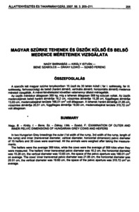 Nagy, Barnabás and Király, István and Bene, Szabolcs and Dákay, Ildikó and Szabó, Ferenc (2007) Magyar szürke tehenek és üszők külső és belső medence méreteinek vizsgálata. ÁLLATTENYÉSZTÉS ÉS TAKARMÁNYOZÁS, 56 (3). pp. 205-211. ISSN 0230-1814