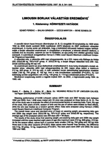A szerzők három hazai limousin állományban (A, B, C) vizsgálták 55 tenyészbika és 1838 tehén 1992 és 2005 között született 6046 ivadékának (3079 bikaborjú és 2967 üszőborjú) választási eredményeit. A munka során azt értékelték, hogy a különböző környezeti hatások hogyan befolyásolják a borjak választási eredményeit. A vizsgálatban a tenyészet, a tehenek elléskori életkora, a születés éve és évszaka, valamint az ivar fix hatásként, az apa pedig mint véletlen genetikai hatás szerepelt. A számítások elvégzéséhez Harvey's (1990) Least Square Maximum Likelihood Computer Program- ot használtak. A választási súly, a választás előtti napi súlygyarapodás, és a 205. napos súly főátlaga és hibája (SE) 202±2,68 kg, 797±14,67 g/nap, ill. 203±2,99 kg, a borjak átlagos választási kora 209. nap, annak szórása pedig 48 nap volt. Az eredmények szerint az anya életkorának emelkedésével 8. éves korig növekedett a borjak választási súlya, választás előtti napi súlygyarapodása és 205. napos súlya (ekkor a maximum 212 kg, 849 g/nap, ill. 215 kg volt). A nyári születésű borjak statisztikailag igazolhatóan kisebbek voltak (190 k9» 744 g/nap, ill. 192 kg), mint a más évszakokban születettek (P<0,001). Az ivari különbség szintén szignifikáns volt (+9 kg, +39 g/nap, ill. +14 kg) a bikaborjak javára (P<0,001). Mindhárom tulajdonság esetén a legjobb évjárat 2001. és 2002., a legrosszabb pedig 1994. és 1995. volt.