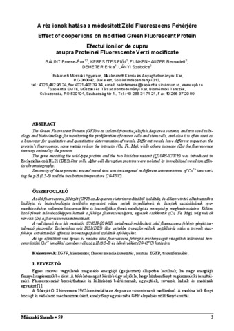 Bálint, Emese-Éva and Keresztes, Előd and Funkenhauzer, Bernadett and Demeter, Erika and Lányi, Szabolcs (2012) A réz ionok hatása a módosított Zöld Fluoreszcens Fehérjére. MŰSZAKI SZEMLE (EMT) (59). pp. 3-10. ISSN 1454-0746
