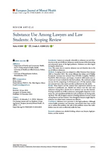 Introduction: Lawyers are uniquely vulnerable to substance use and disorders due to the use of different substances mainly because of the demanding and adversarial nature of the legal profession. Substance use often begins during law school years. Aims: This study aims to examine substance use and disorders due to the use of different substances. Methods: A scoping review was adopted to collect literature from January 2000 to November 2023. The review followed the Arksey and O’Malley framework. Literature was retrieved from CINAHL Complete, PubMed, PsycINFO, Web of Science, and Scopus. A total of 1,808 studies were retrieved and 14 were included for the final synthesis. The combined sample size was 16,722, comprising 15,150 lawyers and 1,572 law students. Data was extracted into a data matrix and then synthesized into the results. Results: Many lawyers and law students have experienced substance use disorders or problematic use. Alcohol and tobacco were the most used substances among them. Suicide due to substance use was also detected. Findings reveal the use of illicit substances, demographic disparities in substance use, and unprofessional behavior such as substance use during working hours. The role of support systems in battling substance use was critical among lawyers and law students. Even though few lawyers sought help for substance use related issues, treatment was effective. Conclusions: Substance use is pervasive in the legal profession. Although various health promotion and education interventions have been carried out to address this problem, the scale of the problems.