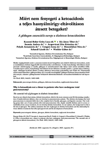 Kaszoni-Bokor, Gréta Luca and Kis, János Tibor and Szemán, Andrea and Arapovicsné Kiss, Krisztina and Polyák, Annamária and Czégeni, Anna and Hosszúfalusi, Nóra and Schandl, László and Winkler, Gábor (2025) Miért nem fenyegeti a ketoacidosis a teljes hasnyálmirigy-eltávolításon átesett betegeket? : A glükagon esszenciális szerepe a diabeteses ketoacidosisban = Why is ketoacidosis not a threat to patients who have undergone total pancreatectomy? : The essential role of glucagon in diabetic ketoacidosis. ORVOSI HETILAP, 166 (43). pp. 1683-1688. ISSN 0030-6002