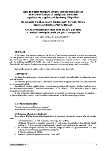 Moga, Călin and Fenesan, Crina (2018) Egy gyalogos felüljáró üreges szerkezettel készült acél–beton kompozit tartójának elemzése rugalmas és rugalmas–képlékeny állapotban. MŰSZAKI SZEMLE (EMT) (71). pp. 3-12. ISSN 1454-0746