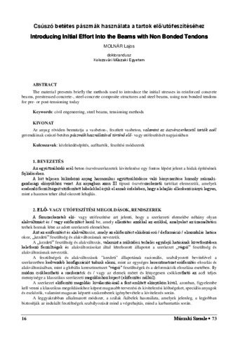 Molnár, Lajos (2019) Csúszó betétes pászmák használata a tartok elő/utófeszítéséhez. MŰSZAKI SZEMLE (EMT) (73). pp. 16-25. ISSN 1454-0746