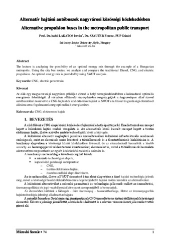 Lakatos, István and Szauter, Ferenc and Pup, Dániel (2019) Alternatív hajtású autóbuszok nagyvárosi közösségi közlekedésben. MŰSZAKI SZEMLE (EMT) (74). pp. 1-12. ISSN 1454-0746