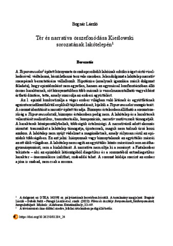 Bognár, László (2024) Tér és narratíva összefonódása Kieślowski sorozatának lakótelepén. In: A város mediális lenyomatai. Ludovika Egyetemi Kiadó, Budapest, pp. 319-333. ISBN 9789636530648; 9789636530655; 9789636530662