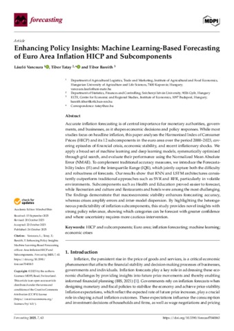 Vancsura, László and Tatay, Tibor and Bareith, Tibor (2025) Enhancing Policy Insights : Machine Learning-Based Forecasting of Euro Area Inflation HICP and Subcomponents. FORECASTING, 7 (4). No. 63. ISSN 2571-9394