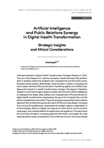 Irwansyah, Irwansyah (2025) Artificial Intelligence and Public Relations Synergy in Digital Health Transformation : Strategic Insights and Ethical Considerations. KOME: AN INTERNATIONAL JOURNAL OF PURE COMMUNICATION INQUIRY, 13 (2). pp. 95-118. ISSN 2063-7330